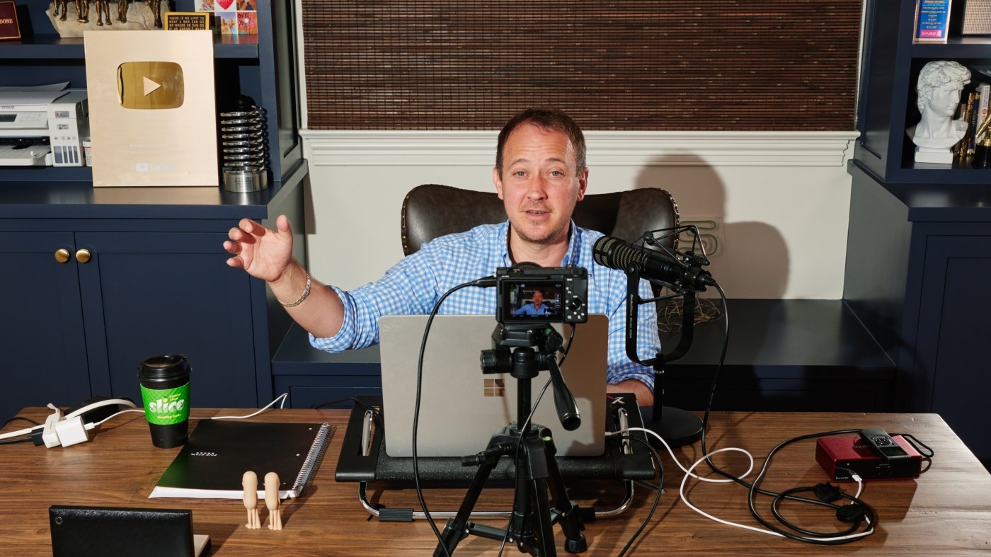 He wraps his call. He has 588 unread text messages. But he’s thinking about something else: his frenetic YouTube schedule.
