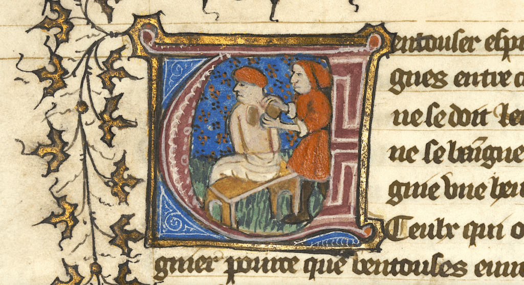 Not that the practice of medieval medicine came down to applying leeches and nothing more. In the manuscripts digitized by Curious Cures (which include not just strictly medical texts but also bibles, law texts, and books of hours), one finds a wonderland of dove feces, fox lungs, salted owl, eel grease, weasel testicles, quicksilver (i.e. mercury) — a wonderland for readers curious about medieval forms of knowledge, if not for the actual patients who had to undergo these dubious treatments.