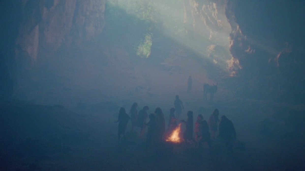 Rivers: That was deliberate, and it’s partly to do with DeLillo’s play—which isn’t just word-heavy but also in some fundamental ways about language. The extinction of things goes hand-in-hand with the extinction of all languages. If these kids were really trying to start afresh, to reinvent the world from scratch, then maybe they’d also have to find other ways to communicate. They might not need language anymore. Or if they do, it may be of a different kind altogether. I remember asking one of the girls by the fire, in the ritual’s scene, if she wanted to say something about the way she imagined the future, and she recited this amazing, dreamy kind of poem. I thought it was just incredible, and when I asked her what kind of future she was thinking about she said, “Tonight!” [laughs] It was a beautiful thing to see; she spoke as if in a trance. That was enough to me. We were moving into a mode of being that defied description and exposition. Suddenly we were outside all of that.